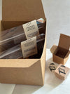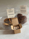 2 packs of seasonal crunchy cookies and a wooden stamp